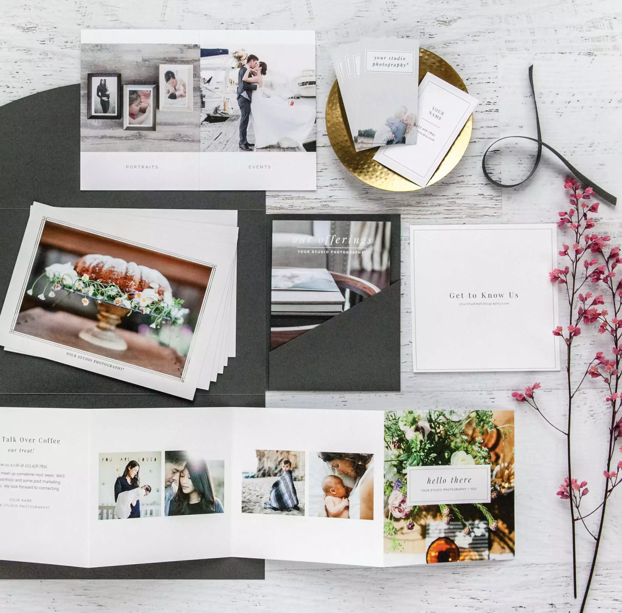 Sample images by Cassie Green Photography, Natalie Franke Photography, and Elizabeth Messina Photography. Small welcome folders shown in our example images are available for purchase here.