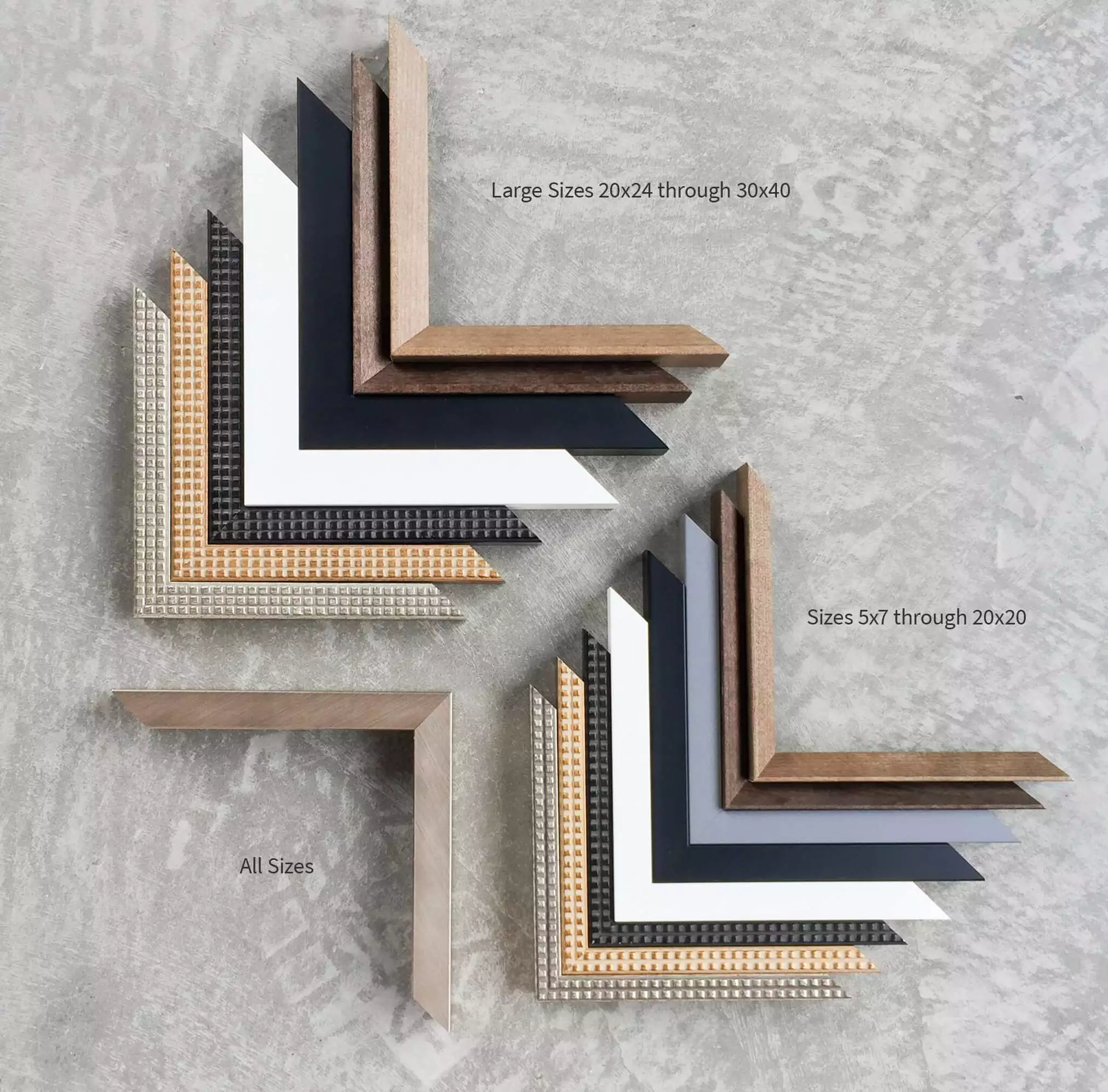 Sizes 5×7 through 20×20: